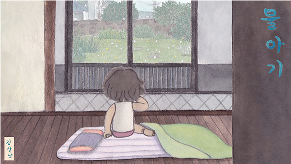 Sangnam Kim엄마가 잠시 부재중에 아이는 바다에 빠지게 된다. “엄마가 잠시 부재중에 아이는 바다에 빠지게 된다. 그이후에 어떤 일들이 벌어졌을까?” 도심 가까이 작은 어촌 마을, 한낮에 홀로 잠에서 깬 아이는 엄마를 찾아 집 안팎을 돌아다니다 마당 뒷문을 통해 바닷가로 나아가고 순간 사라진다. 어떤 손길에 의해 물방울이 된 아이는 바다 속 깊은 호수로 가게 되고, 다른 물방울들과 함께 머무르게 된다. 그리고 보름달이 뜬 어느 날 바닷속 깊은 호수 위로 달빛이 찾아오고, 물방울들은 하늘 위 구름이 되어 바람과 함께 세상 밖 여행을 시작한다