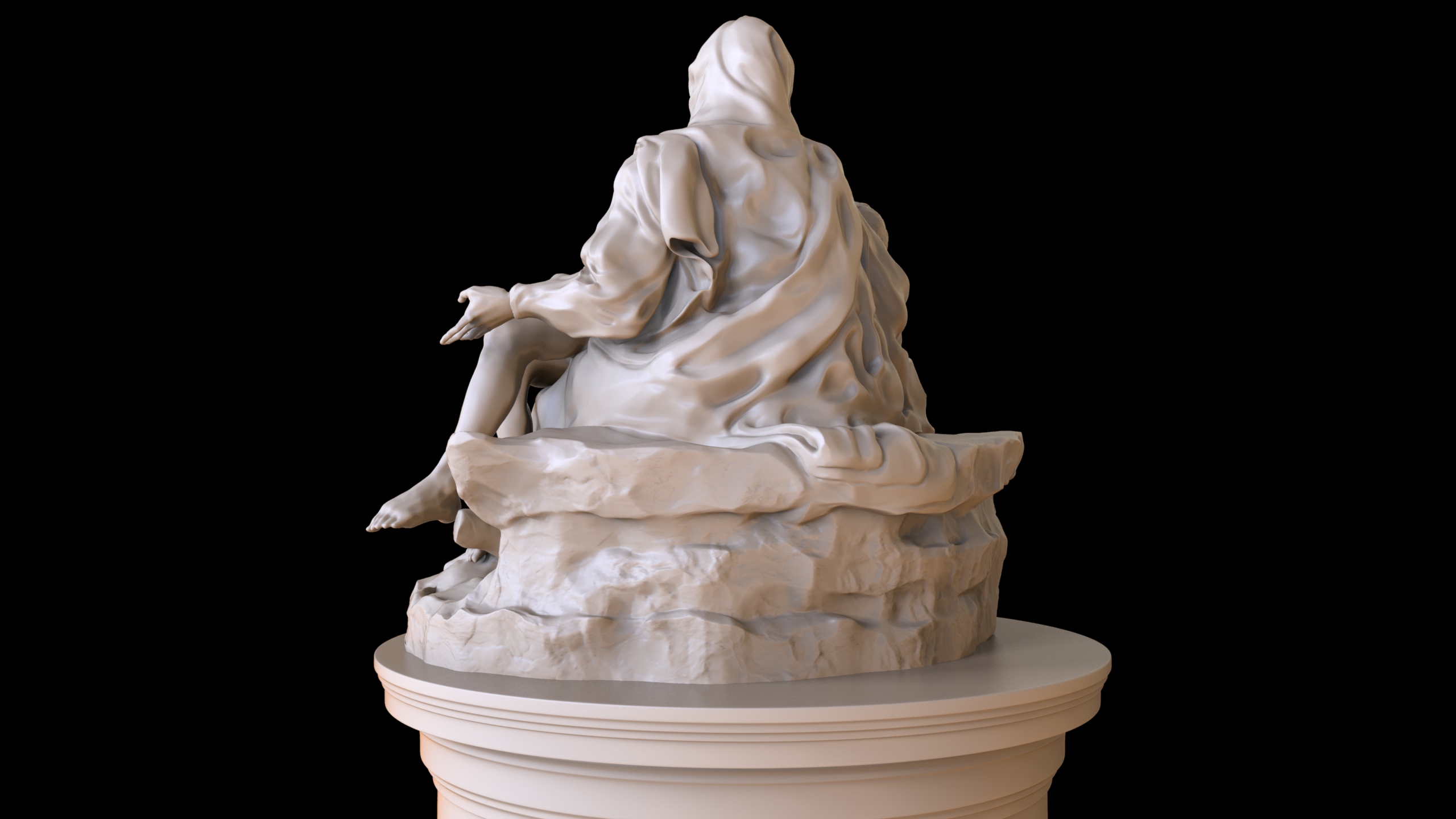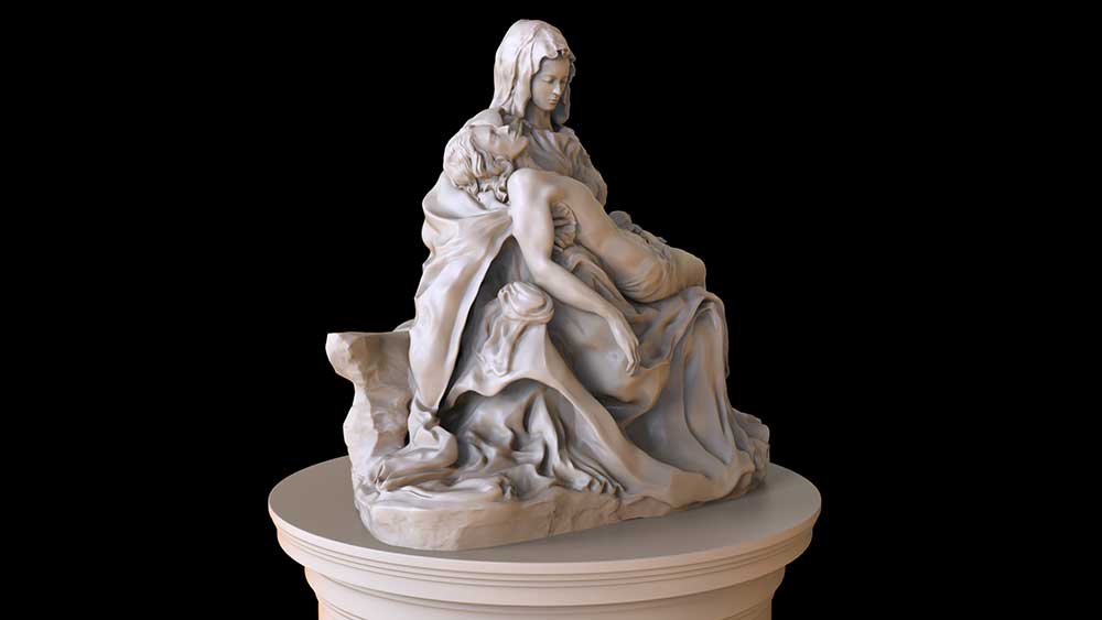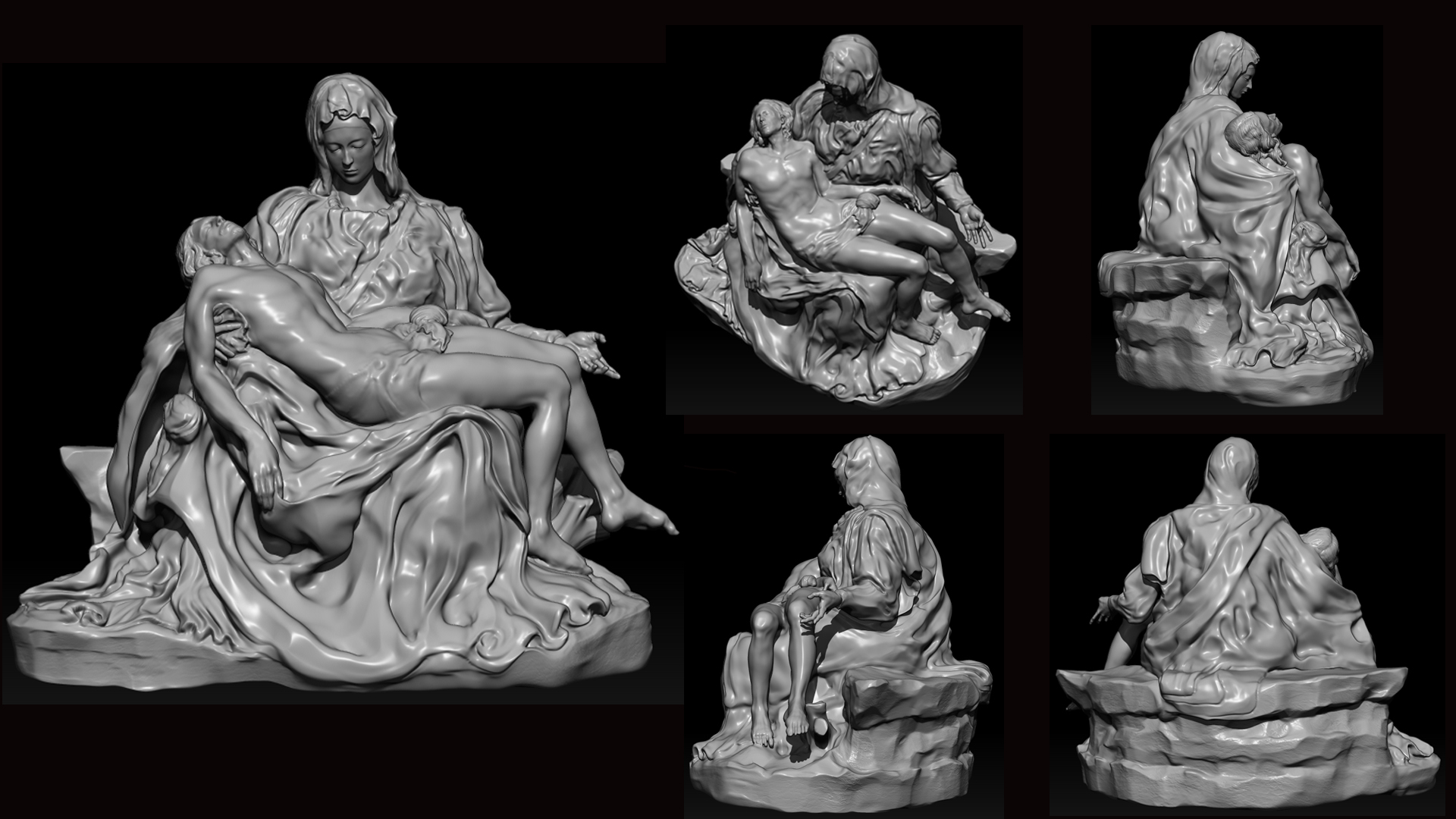 권태환This work is a 'possibility' to indirectly understand and solve the work in the current situation where it is impossible to go abroad due to the corona virus. The technology used in the work uses the ‘Photogrammetry’ technique to acquire the appearance of Michelangelo’s work ‘Pieta’ as data, Detailed sculpting work was realized using tools such as Zbrush and 3Ds Max, and the artist tried to show the details of the artist's sculpting efforts through turntable rotation.
