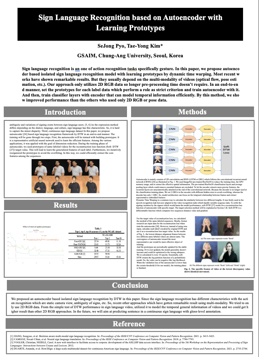 표세종SeJong Pyo, Master course in the Department of advanced image Graduated School of advanced Imaging Science, Multimedia and Film, Chung-Ang University. Received bachelor’s degree in flight operation. Research Interests: Action recognition, Action segmentat