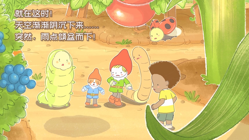 MA ZIXUANLinda finds a vegetable basket with holes in it in the store. Who drilled the hole? She transforms into a garden fairy and leaves for an imaginary world. They meet earthworms eating tomatoes, ladybugs eating cabbage, caterpillars eating carrots, and Edward, who was writing poetry with them. Then, it rains heavily, and the bug friends find out that there is no place to shelter from the rain. Linda and Louie make a vegetable restaurant with their bug friends and return to the real world.