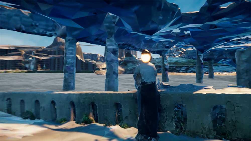 Song Haemin<Ghost Walk> begins with changing player's view from AR-like map to virtual reality graduaily. In three layers of game-player, programmer-character. and destiny-human, you, who exists everywhere at the same time, misunderstands 'here' as a metaphor and interpretation of 'there'. You, who plays this game, takes a walk in this mystical illusion, while leaving a trajectory in real life with an inseparable body. The trace of the player is accumulated in the space and visualized in contrast to the Al predicted circuit The gap between two paths induces the failure of attempts to understand the world by understanding the virtual world. This meditative walk, which seems to be idling at first glance in a spiral path, will at some point vary in altitude.