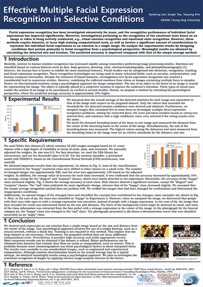 SeungRi Yoo, Master course in the Department of advanced image Graduated School of Advanced Imaging Science, Multimedia and Film, Chung-Ang University. Received bachelor's degree in Medical Engineering. His research intesrests include deep learning and computer vision.