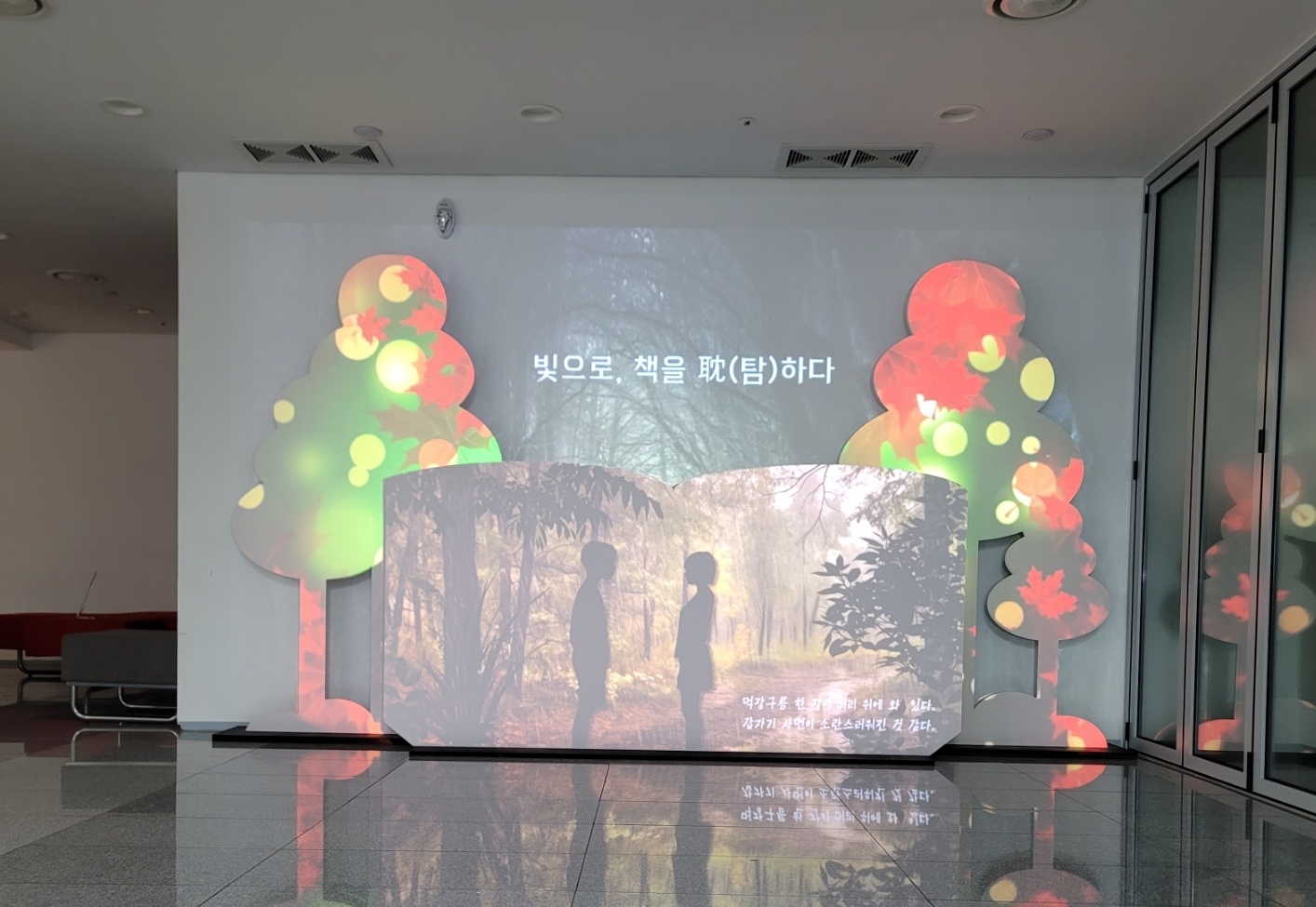 Utilizing projection mapping technology, the sculpture depicts a forest and a book, expressing the emotions and relationships between the main characters through media art. Through a combination of light and video, their stories and emotions are explored through different interpretations.