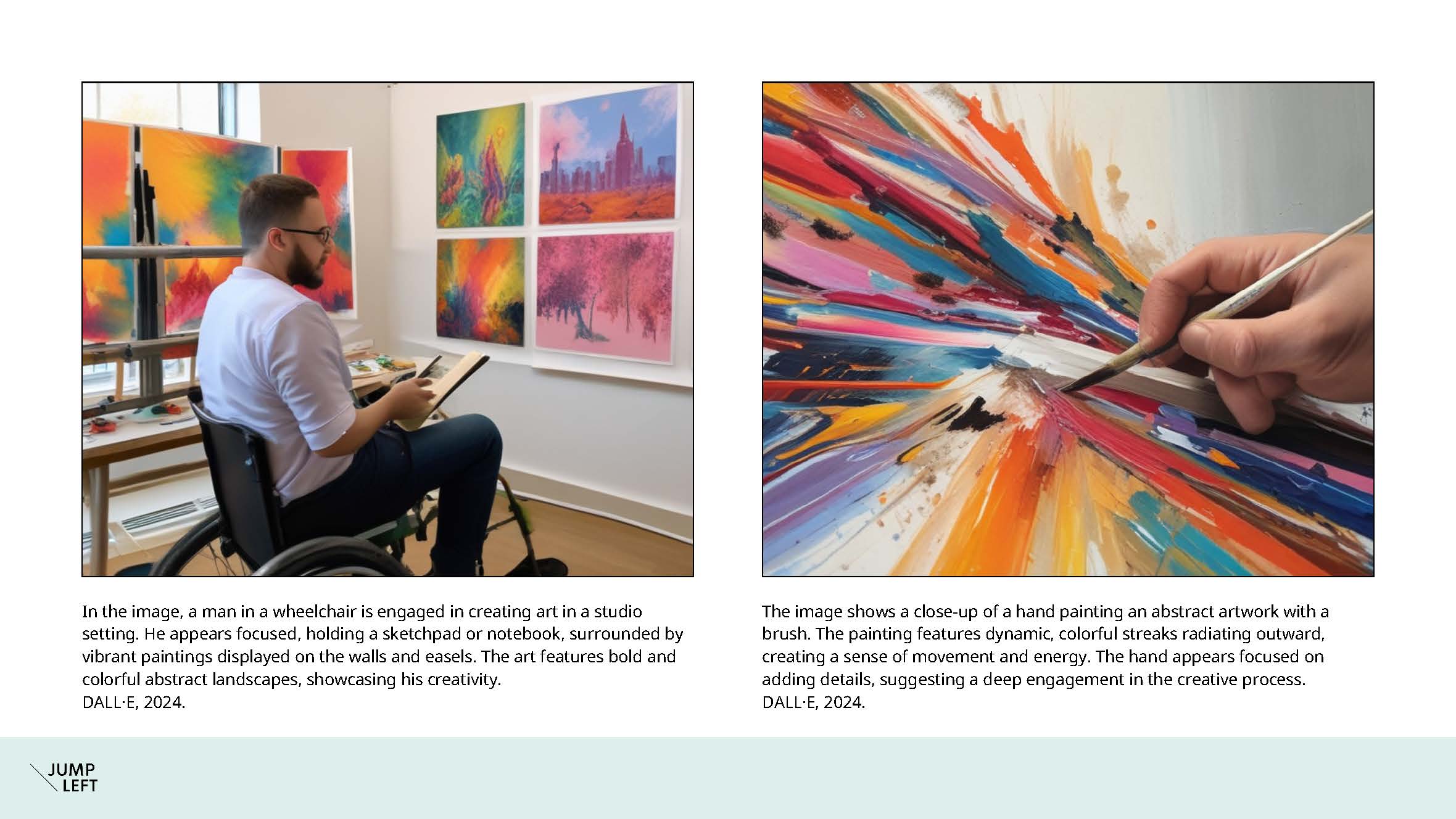 representing neurodivergent artists through Jump Left. It addresses AI’s benefits in efficiency and