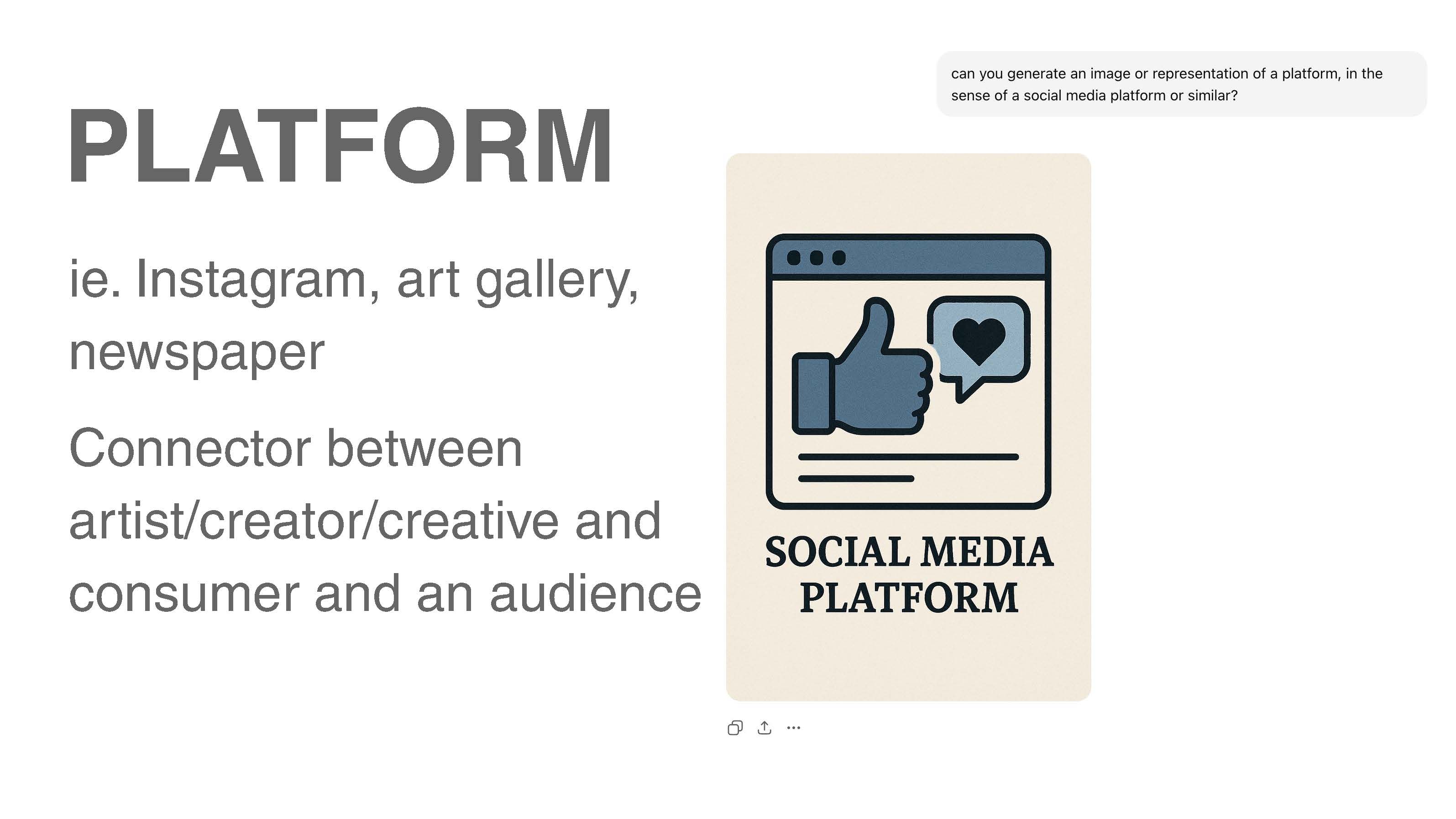 I would like to categorize AI technologies are a Tool, Media or Platform, what the differences are between these positions. Using my experience to illustrate, I show how different specific AI implementations can fit into different categories, AI can be used as a tool to add to the repertoire or creative capacity of an artist, or AI can be used to create new platforms that degenerate an audience or user's experience. It is important for artists to be aware of the effects and context of tools when they are using them, and for audiences or users to have a level of media literacy when engaging with outputs that may have been touched by AI fingers.
