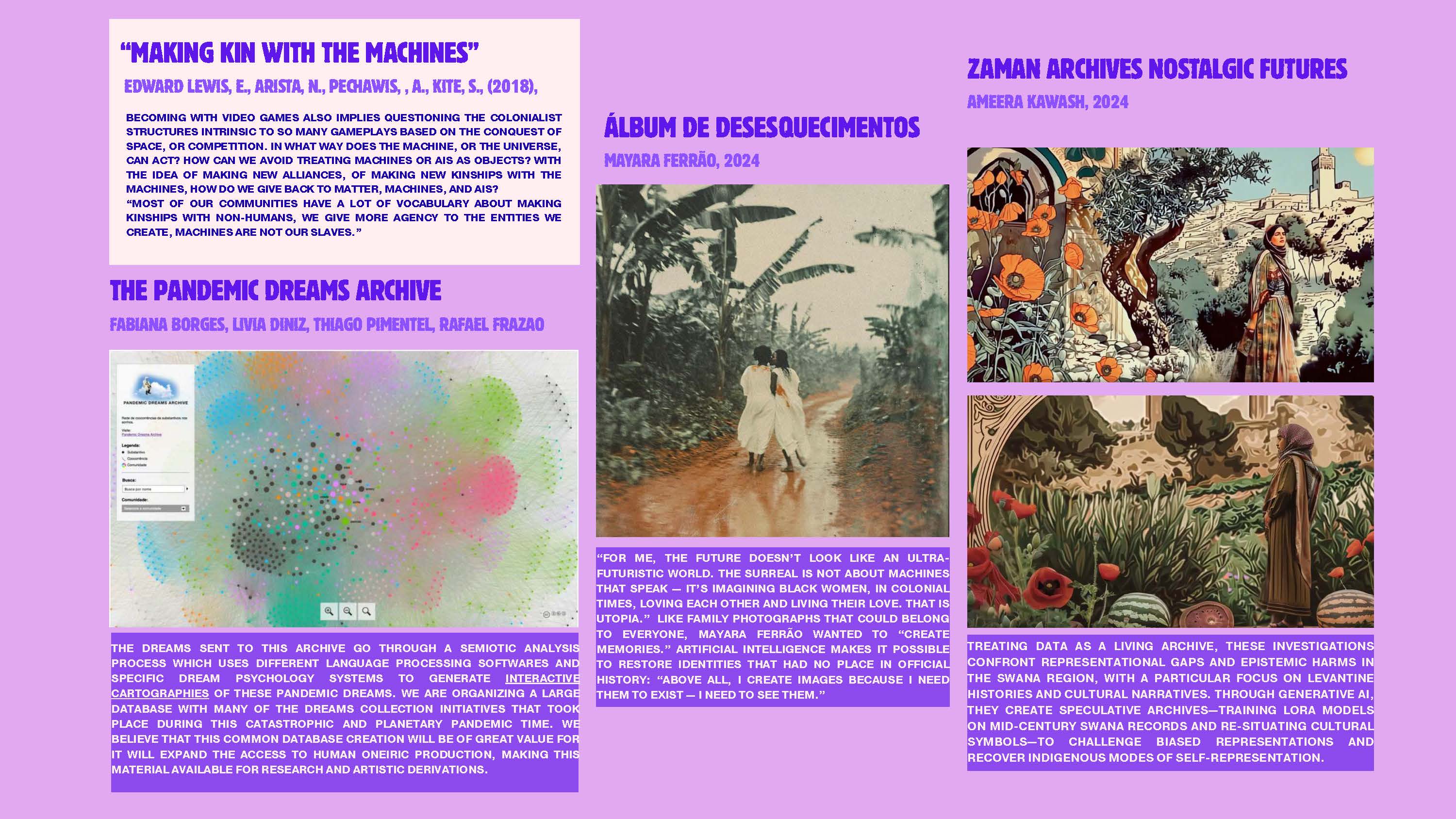In dialogue with artificial intelligence, these practices reveal both risks and potentials: AI reproduces biases embedded in datasets, perpetuating colonial erasures, but it also offers possibilities for co-creating new imaginaries—ecological, interspecies, and decolonial.